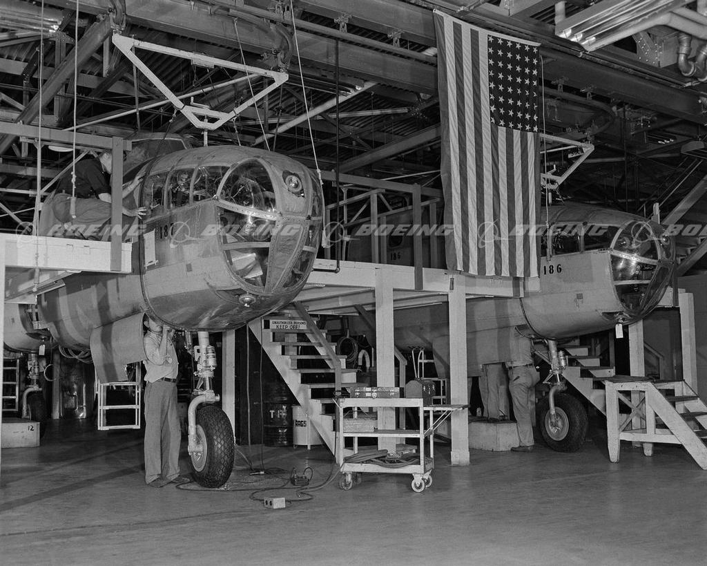 Named after General “Billy” Mitchell, America’s foremost supporter of air power, the B-25 Mitchell first flew on Aug. 19, 1940, and was the first multiengine design to go beyond the prototype stage. North American Aviation built more than 11,000 B-25s for the U.S. Army Air Forces and the U.S. Navy, which called it the PBJ, plus 50 each for China and Great Britain. The B-25 bomber had a wingspan of 67 feet and was 52 feet 11 inches long. One version, the B-25H, was the most heavily armed attack bomber of its time, with a 75-millimeter gun, up to 14 .50 caliber machine guns and 5,000 pounds of bombs carried in an internal bomb bay.