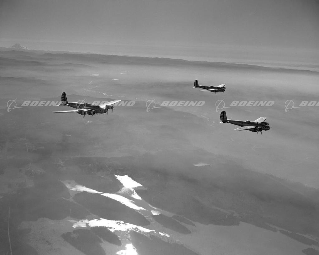 B-17 Flying FortressC and Two B-17D Flying Fortresss Flying Above Mountain