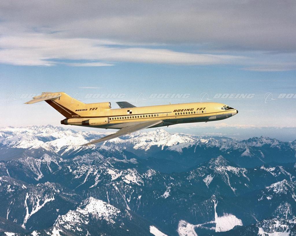 727-100 Flying Over Mountains