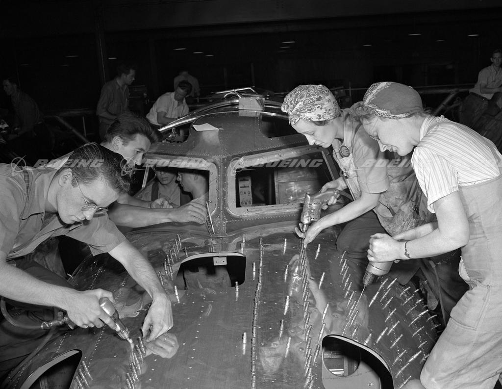 Man and Woman Bucking Rivets on a B-17 Flying Fortress