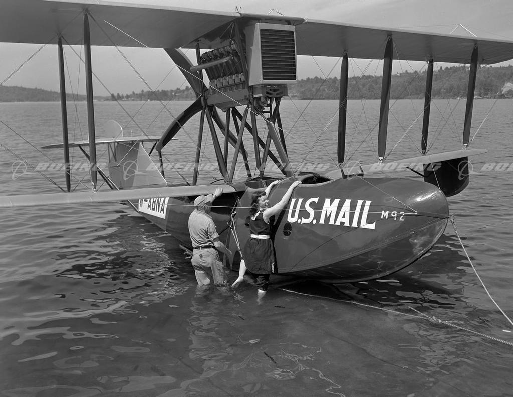 After the war, Boeing designed its first commercial airplane with the vast water areas of the Northwest in mind. The B-1 was a conventional pusher flying boat that could carry a pilot and two passengers as well as mail or cargo. The hull was laminated wood verneer, and the wing frames were spruce and plywood. Although a good airplane, the B-1 did not sell well because the market was overwhelmed with cheap war-surplus aircraft. The only B-1 built was sold to Eddie Hubbard, who was awarded one of the first airmail contracts. Flying more than 350,000 miles over a span of 8 years, the B-1 wore out six engines shuttling mail between Victoria, British Columbia and Seattle.