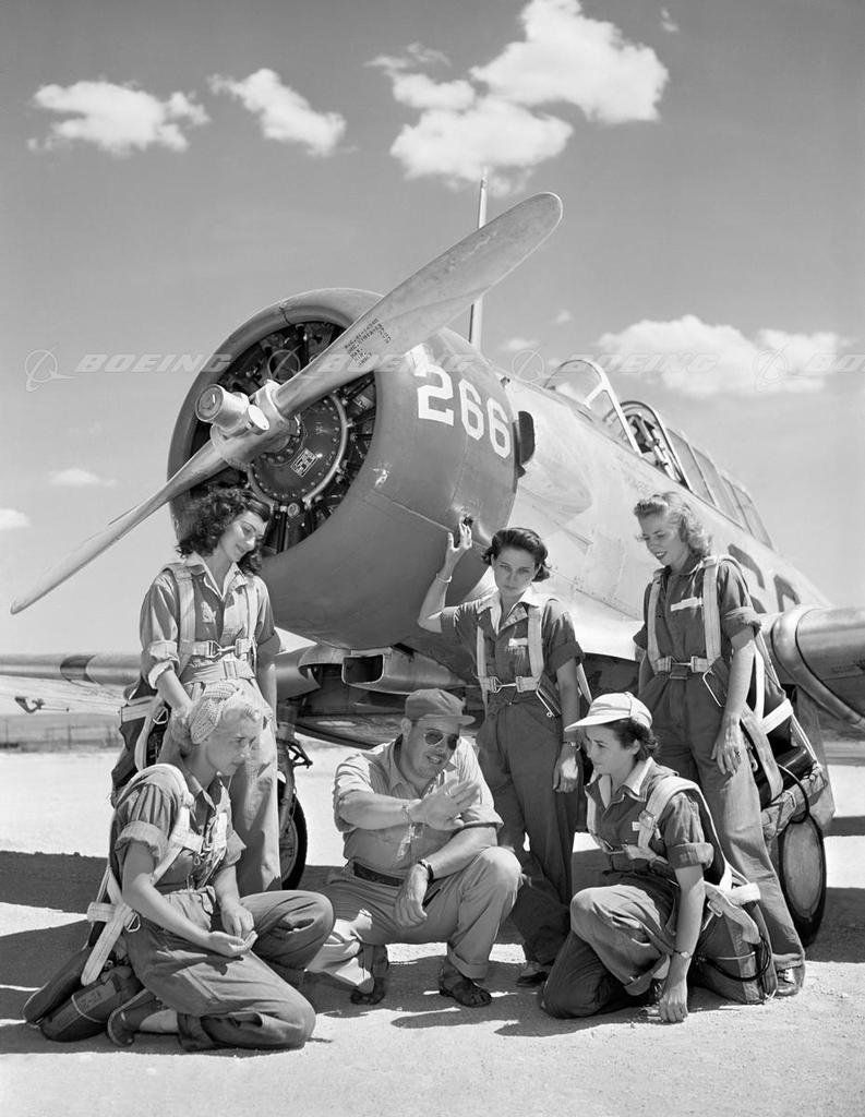 AT-6 Texan Trainer with Female Flight Class and Male Instructor