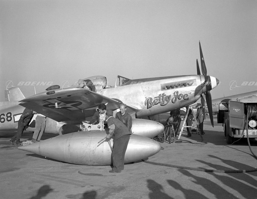 P-82 Twin Mustang Betty Joe being Fitted with Extended Range Fuel Tanks