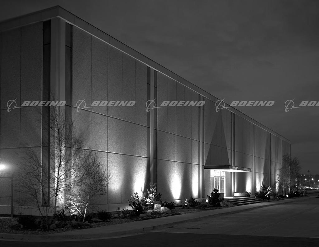 B-17E Flying Fortress Parked in Front of Boeing Factory at Night