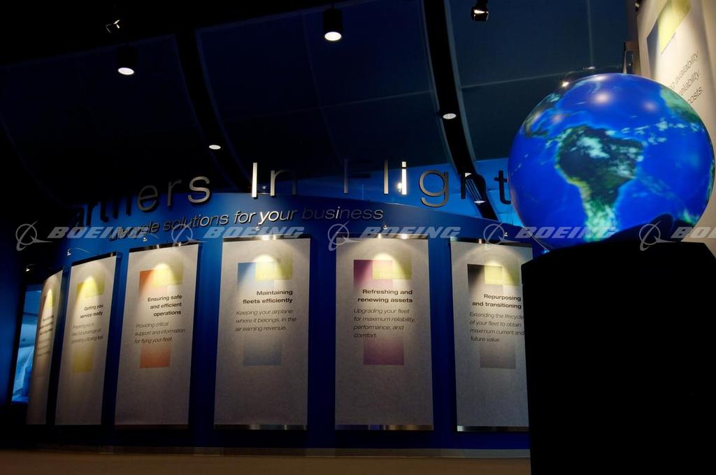 At the new Customer Experience Center in Renton, Wash., Commercial Airplanes' airline customers will see for themselves why Boeing products and services are world-class in innovation, technology and lifetime fleet support—and how choosing Boeing will strategically advance their business plans. Displays feature interiors of the Boeing 787, 777 and 737 airplanes, with plans to add a 747-8 passenger mockup. Additional product features include the premium ceiling and signature seat interiors from a 777-200LR during last year's "Going the Distance" world tour and a 777 overhead crew rest display. The Customer Solutions Studio demonstrates to Boeing partners and customers how to provide business solutions throughout the product life cycle—from acquisition to operations and maintenance, and beyond.