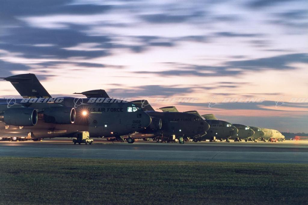 Tails of Multiple C-17 Globemaster IIIs in Flight Line