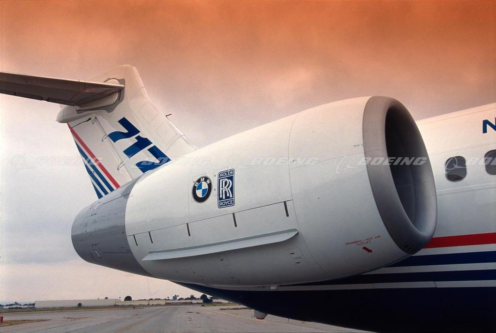 The Boeing 717 was specifically designed for the short-haul, high frequency 100-passenger airline market. The highly efficient 717 concluded its production run in May 2006, though the airplane will remain in service for years to come. Powered by BMW Rolls-Royce BR715 engines, the Boeing 717 completed its first flight in September 1998. Because the 100-seat twinjet will be used for short routes and will experience a high number of takeoffs and landings every day, its systems--including its power plant--was designed to withstand the added severity of high-cycle operations.