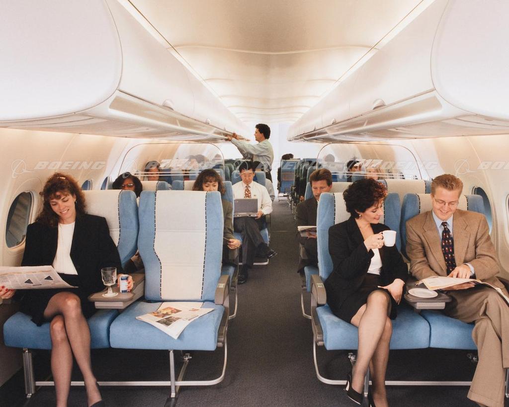 The standard 717 has a two-class configuration with 106 seats. Its passenger-pleasing interior features a five-across-seating arrangement in economy class, with illuminated handrails and large overhead stowbins.