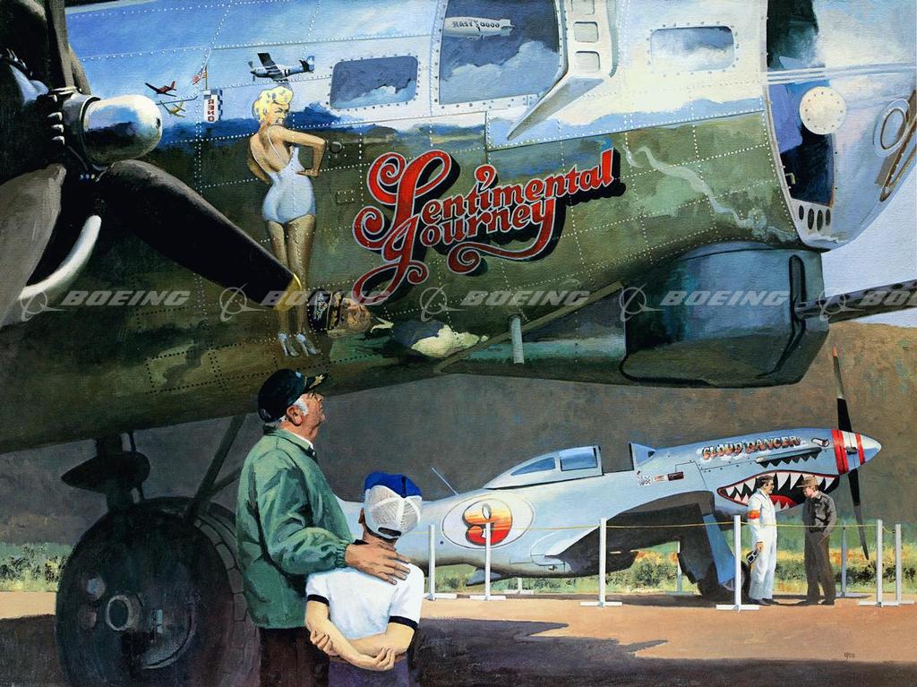 Grandfather and Grandson with B-17G Flying Fortress, "Sentimental Journey" and P-51 Mustang