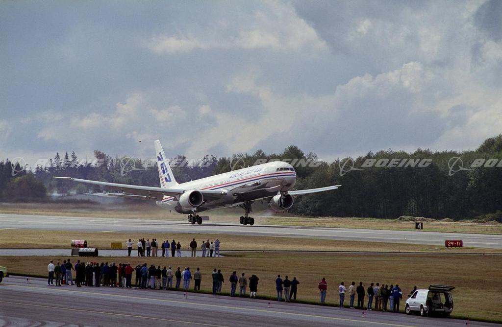 The 767-400ER (extended range) rose into the sky above Paine Field in Everett, Wash., on Oct. 9, 1999 for the first time, and headed west down the Strait of Juan de Fuca. The airplane, identified as VQ001, lifted off the runway at 12:10 p.m. During the flight a series of tests were conducted on the airplane's systems and structures. Flight-test equipment on board recorded and transmitted data to a flight-test control room at Boeing Field in Seattle. The debut flight signalled the official beginning of a six-and-a-half-month flight-test program for the 767-400ER, during which this airplane, and two other 767-400ERs accumulated approximately 800 flight hours and 1,100 ground-test hours. At the conclusion of flight tests, the 767-400ER achieved certification by the U.S. Federal Aviation Administration and concurrence by the European Joint Aviation Authorities.