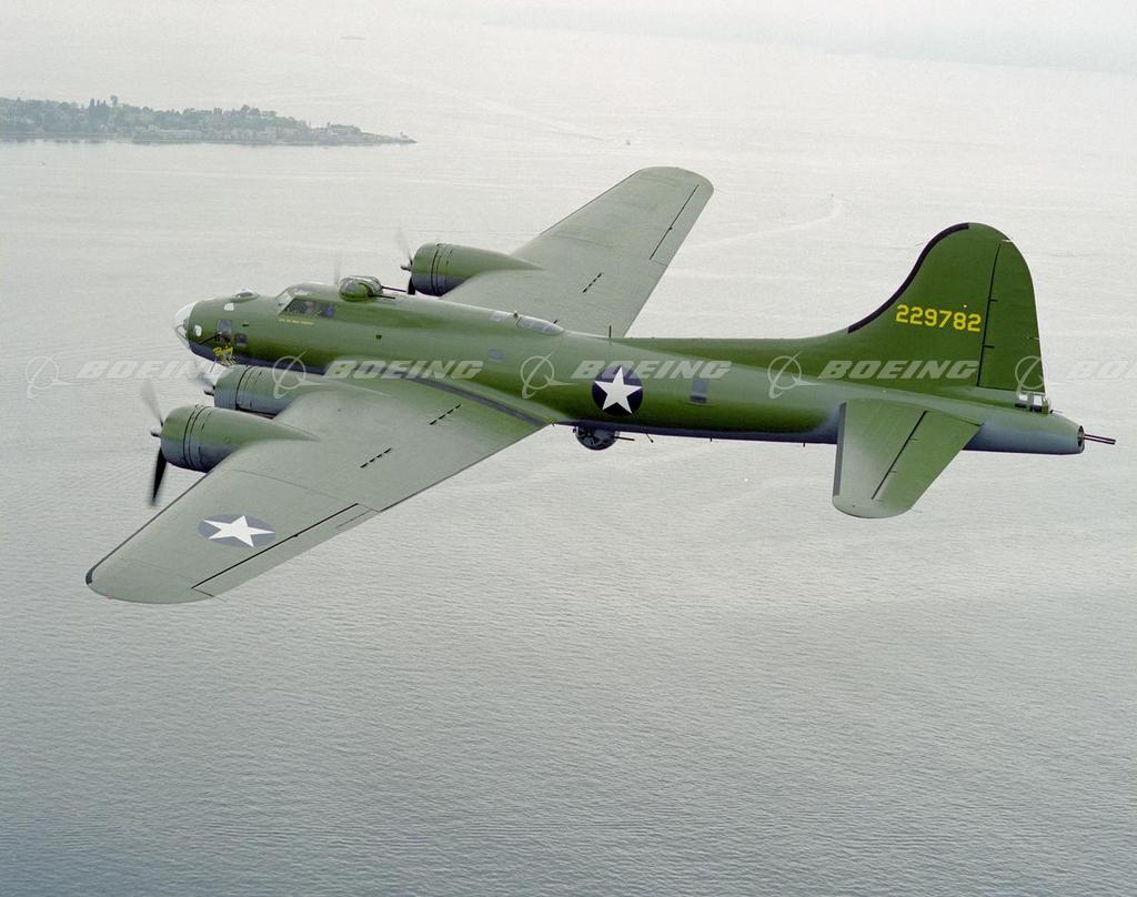 Restored B-17F Flying Fortress Above the Museum of Flight