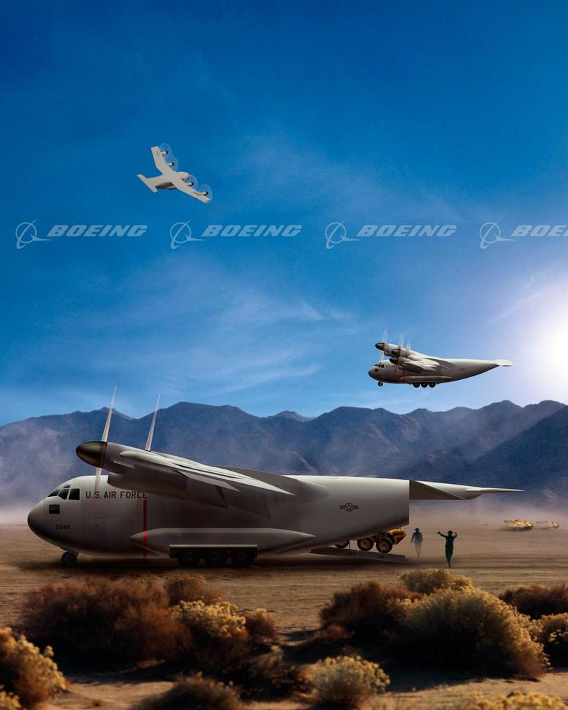 A powerful aircraft that could tilt its wings to give it what's called "super short take off and landing." By being able to operate on short, unprepared runways of between 650 to 1,000 feet, it could serve as an alternative to rotor-wing heavy lifters in certain battlefield situations. Powered by four eight-bladed turboprop engines, the aircraft would feature a tailless fuselage with a forward-swept tiltwing arrangement. This configuration would provide the aircraft with the enhanced performance capability for super-STOL. It would have a fuselage cross-section similar to that of the C-17, and the tailless design would provide greater access, allowing operators to vary the size and configuration of cargo. It also could carry up to 80,000 pounds, accommodating two 20-ton Future Combat Systems vehicles—a payload roughly half as many as a C-17 but twice as many as a C-130.