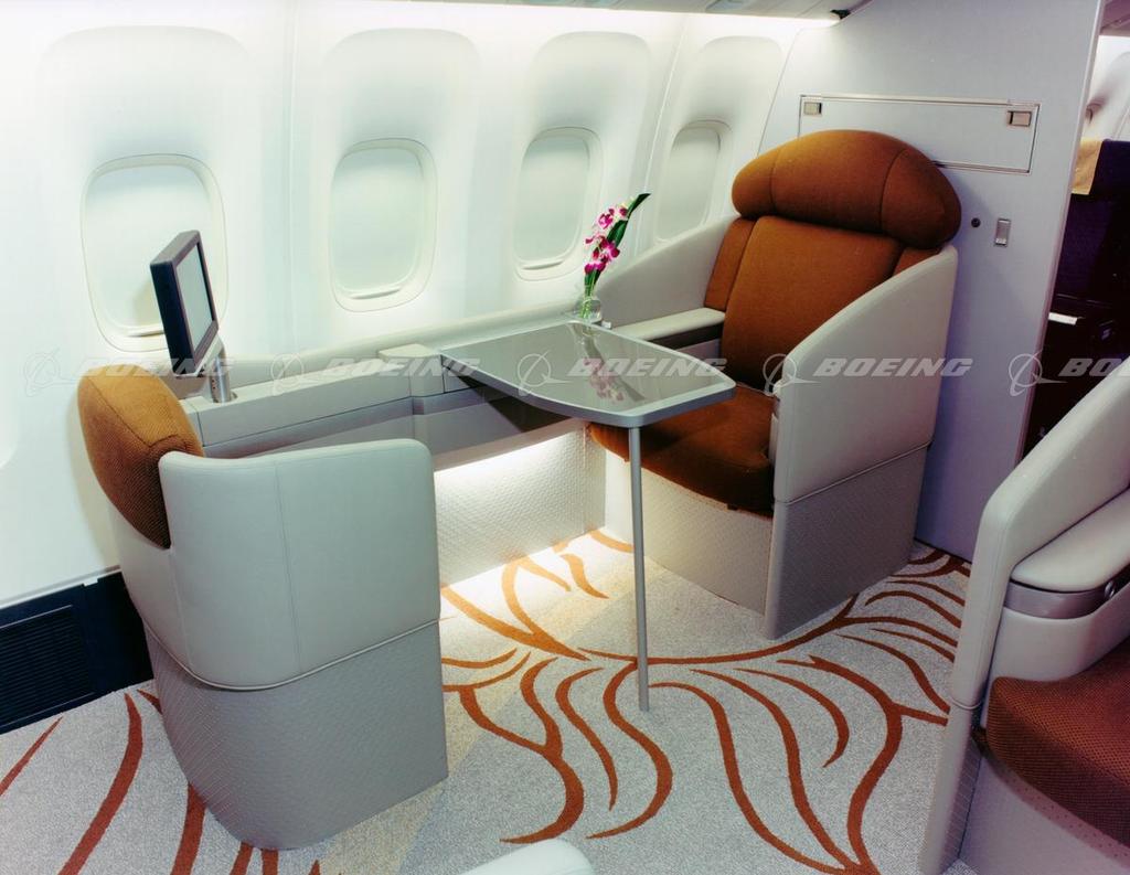 On July 20, 2000, a Boeing 767-400ER extended range) airplane - which at the time, was the newest member in the 767 family of airplanes - took off from Boeing Field on an around-the-world tour that took the airplane to 17 cities and three continents, including the Farnborough Air Show. This 767 had a one-of-a-kind World Tour design inside and out. Both the airplane's distinctive livery and its interior featured graphics and fabrics that reflected the human fascination with flight. Illustrations from the Greek myths of Pegasus and Mercury were beautifully woven into the carpets. The cabin decor featured Leonardo da Vinci's drawings.
