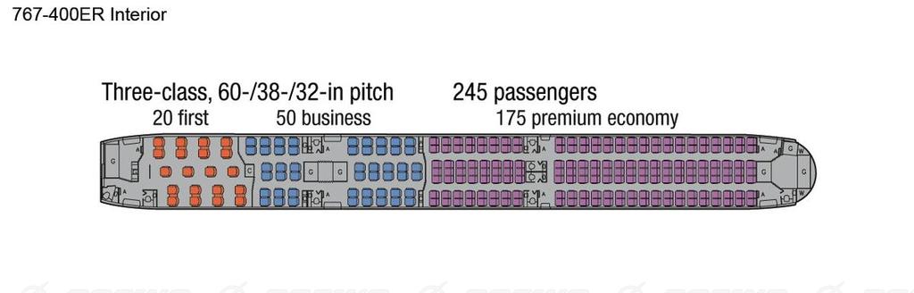 767-400ER Three Class Seating Diagram