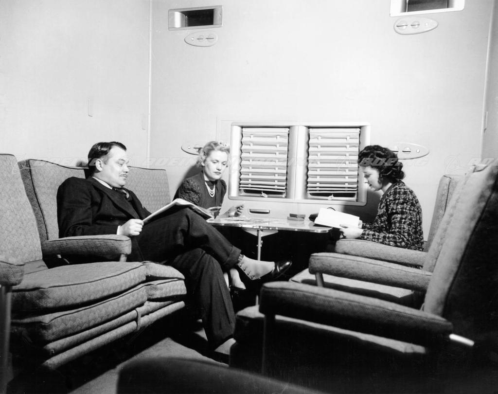 Passengers Relax in the 377 Stratocruiser's Lower Deck