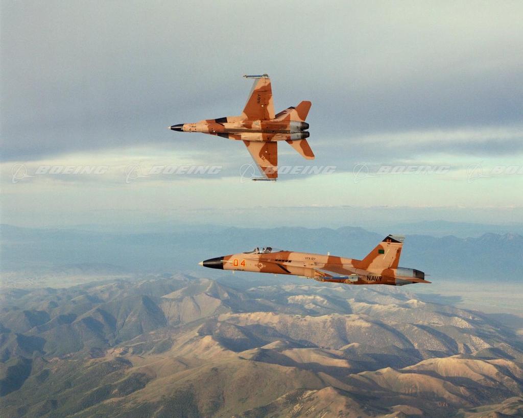 F/A-18 Hornets in Agressor Squadron Livery in Flight out of NAS Fallon, NV