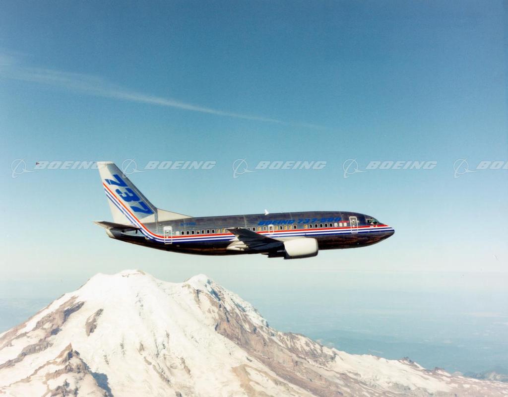 Unpainted 737-500 in Flight Above Mt. Rainier