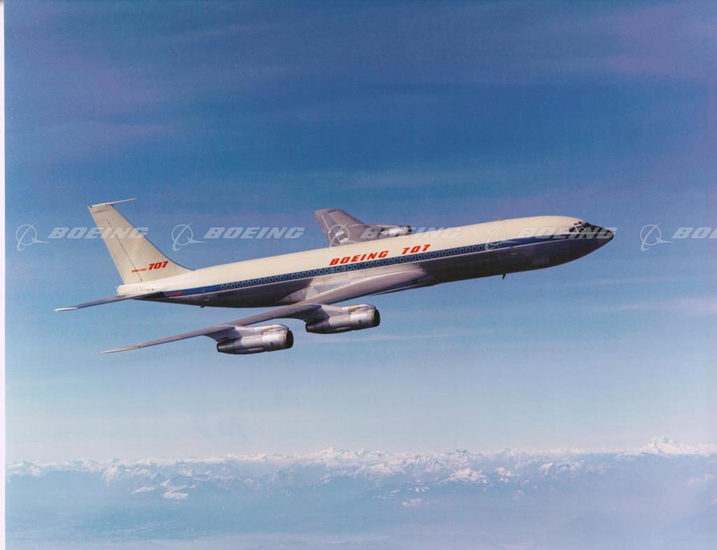 To better compete in the market with Douglas' DC-8 jet transport, a decision was made to widen the 707 fuselage 4 inches, 1 inch wider than the DC-8. Boeing also introduced a new version of the 707, the 707-320 Intercontinental (shown here), which had a larger wing as well as a longer fuselage and increased range. The changes were what the airline customers needed, and orders began pouring in for the 707.