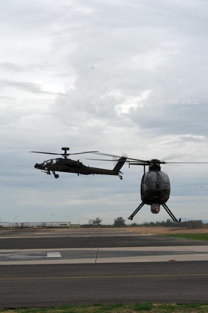AH-64D Apache Follows a MH-6 Little Bird UAV