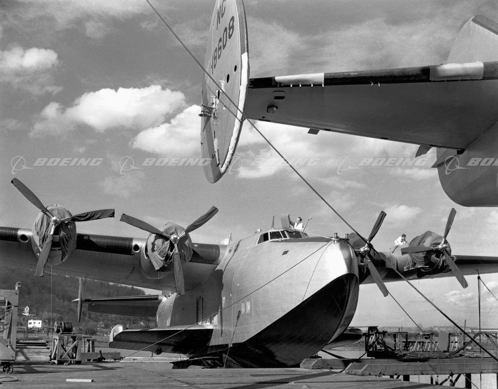 The beautiful Model 314 was designed to meet a specification issued by Pan American Airways in 1936 for a long-range, four-engined flying boat. The wing and horizontal tail surfaces of the XB-15, then under construction, were adapted almost intact to a newly designed flying-boat hull with accommodations for seventy -four passengers and a crew of six to ten.