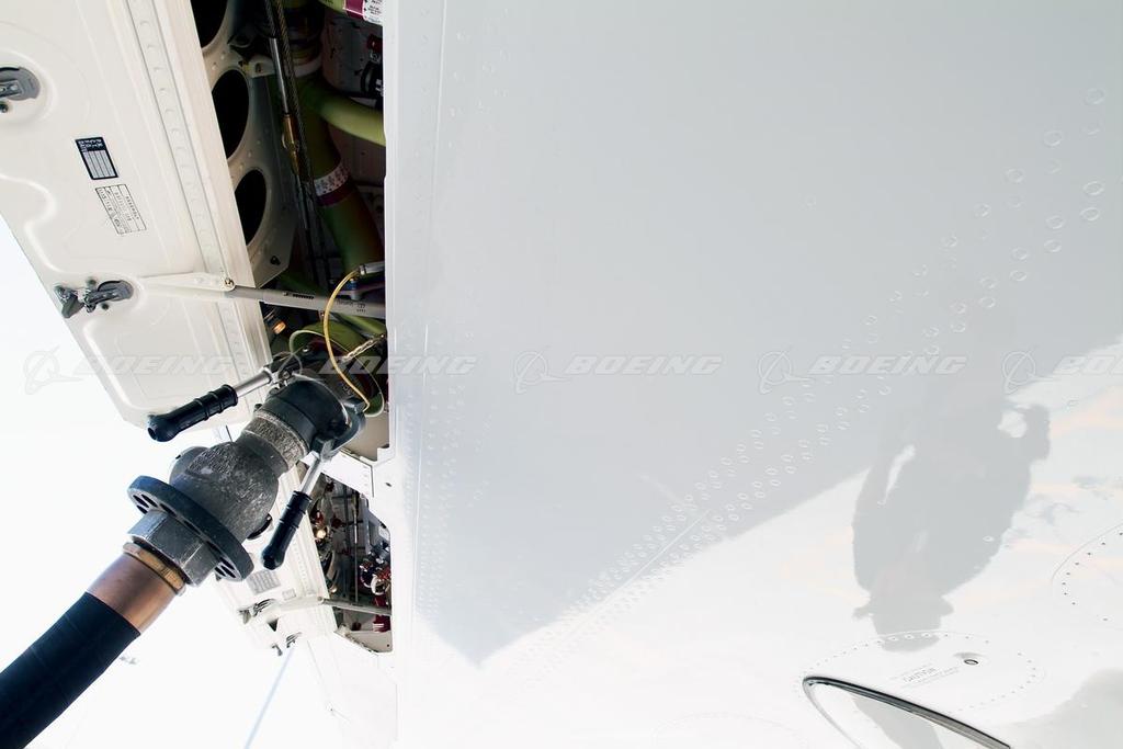 Flight Service Worker Attaching a Pressure Refueling Hose to a 717-200