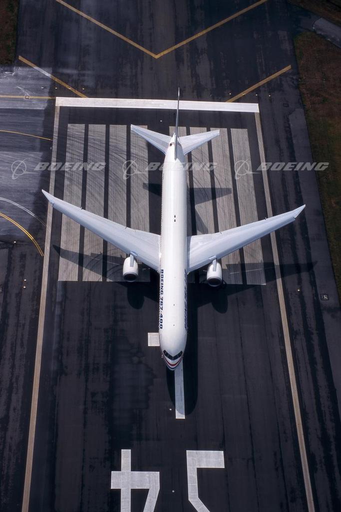 The 767-400ER brings significant improvements in operating economics over competing airplanes in the 240- to 300-seat market. The payload capability, intercontinental range, passenger comfort and commonality with other Boeing jetliners give this airplane strong market appeal. Sized between the Boeing 767-300ER and the Boeing 777-200, the 767-400ER features a lengthened fuselage; aerodynamic improvements, increased takeoff weight capability; and an all-new main landing gear. It is designed to be the most efficient airplane in its size category. Efficient design gives the higher-capacity 767-400ER excellent range capability (approximately 5,645 nautical miles or 10,454 km) to fly about 99 percent of the routes currently being served by airplanes in this size category. The 767-400ER features new, highly back-swept (raked) wing-tip extensions that increase the 767's 156-foot wingspan to 170 feet, 4 inches (51.9 m) designed to increase the aerodynamic efficiency of the wing. This efficiency of design and economy of structure affords the 767-400ER more gate and taxiway flexibility. It can use the same gates as the DC-10-30, MD-11 and L-1011, unlike the A330-200, which must use gates sized by the industry for large airplanes such as the 747 and 777. The 767-400ER interiors have adopted the architectural lines of the award-winning 777 interior. Newly sculpted sidewalls, ceilings and stow bins enhance the wide, open feeling passengers prefer.