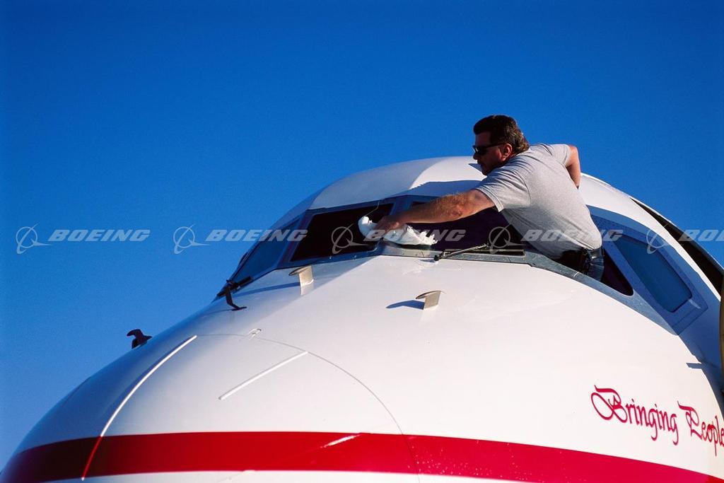 The 717 is a full-size twinjet designed specifically for the short-range, 100-seat regional airline market and is a very efficient and exceptionally quiet airplane. Its advanced technologies and rugged simplicity of design allow it quick turnaround time at a wide range of airports, so crew and passengers spend less time on the ground. It makes effective use of today's technology to lower operating costs, reduce noise and emissions, and provide big jet comfort. The airplane, formerly MD-95, was designated the Boeing 717 following the merger of McDonnell Douglas and The Boeing Company in 1997. In early 2005, after careful assessment of the challenging 100-seat market, Boeing announced that it will conclude 717 production in 2006 after delivering on current customer commitments.