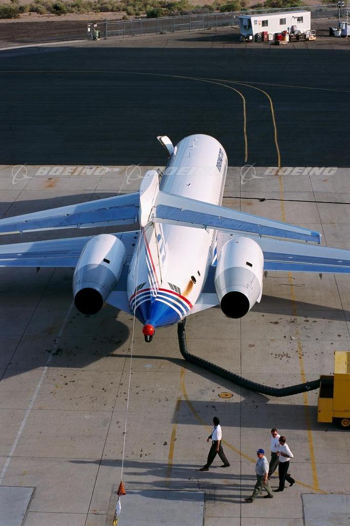 The 717 is a full-size twinjet designed specifically for the short-range, 100-seat regional airline market and is a very efficient and exceptionally quiet airplane. Its advanced technologies and rugged simplicity of design allow it quick turnaround time at a wide range of airports. It makes effective use of today's technology to lower operating costs, reduce noise and emissions, and provide big jet comfort. The airplane, formerly MD-95, was designated the Boeing 717 following the merger of McDonnell Douglas and The Boeing Company in 1997. In early 2005, after careful assessment of the challenging 100-seat market, Boeing announced that it will conclude 717 production in 2006 after delivering on current customer commitments.
