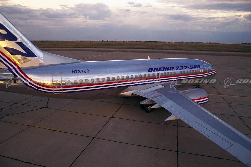 Although it has the largest model designator of its generation, the 737-500 is actually smaller than either the 737-300 or the 737-400. The 737-500 is 101 ft 9 in long and can seat up to 132 passengers in an all-economy configuration. It was built to replace the 737-200. About the same size as the 737-200, it is the smallest member of the 737 family, but uses all the advanced technologies of the larger 737-300 and 737-400 models. The 737 family of jets share the reliability, simplicity, family commonality, and low maintenance costs that have made the 737 the favorite of the world's airlines.
