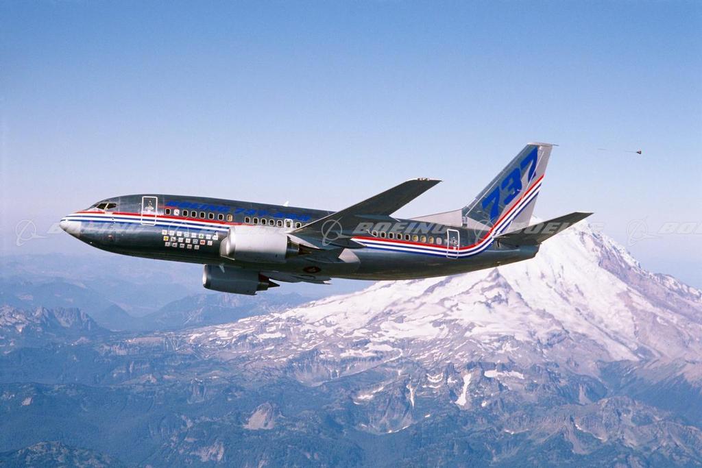 Unpainted 737-500 in Flight Above Mt. Rainier