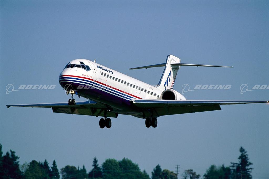 The 717 is a full-size twinjet designed specifically for the short-range, 100-seat regional airline market and is a very efficient and exceptionally quiet airplane. Its advanced technologies and rugged simplicity of design allow it quick turnaround time at a wide range of airports, so crew and passengers spend less time on the ground. It makes effective use of today's technology to lower operating costs, reduce noise and emissions, and provide big jet comfort. The airplane, formerly MD-95, was designated the Boeing 717 following the merger of McDonnell Douglas and The Boeing Company in 1997. In early 2005, after careful assessment of the challenging 100-seat market, Boeing announced that it will conclude 717 production in 2006 after delivering on current customer commitments.