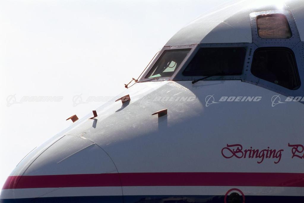 The 717-200 is a full-size twinjet designed specifically for the short-range, 100-seat regional airline market and is a very efficient and exceptionally quiet airplane. Its advanced technologies and rugged simplicity of design allow it quick turnaround time at a wide range of airports, so crew and passengers spend less time on the ground. It makes effective use of today's technology to lower operating costs, reduce noise and emissions, and provide big jet comfort. The airplane, formerly MD-95, was designated the Boeing 717 following the merger of McDonnell Douglas and The Boeing Company in 1997. In early 2005, after careful assessment of the challenging 100-seat market, Boeing announced that it will conclude 717 production in 2006 after delivering on current customer commitments.