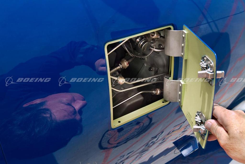Flight Service Worker Attaching a Pressure Refueling Hose to a 717-200