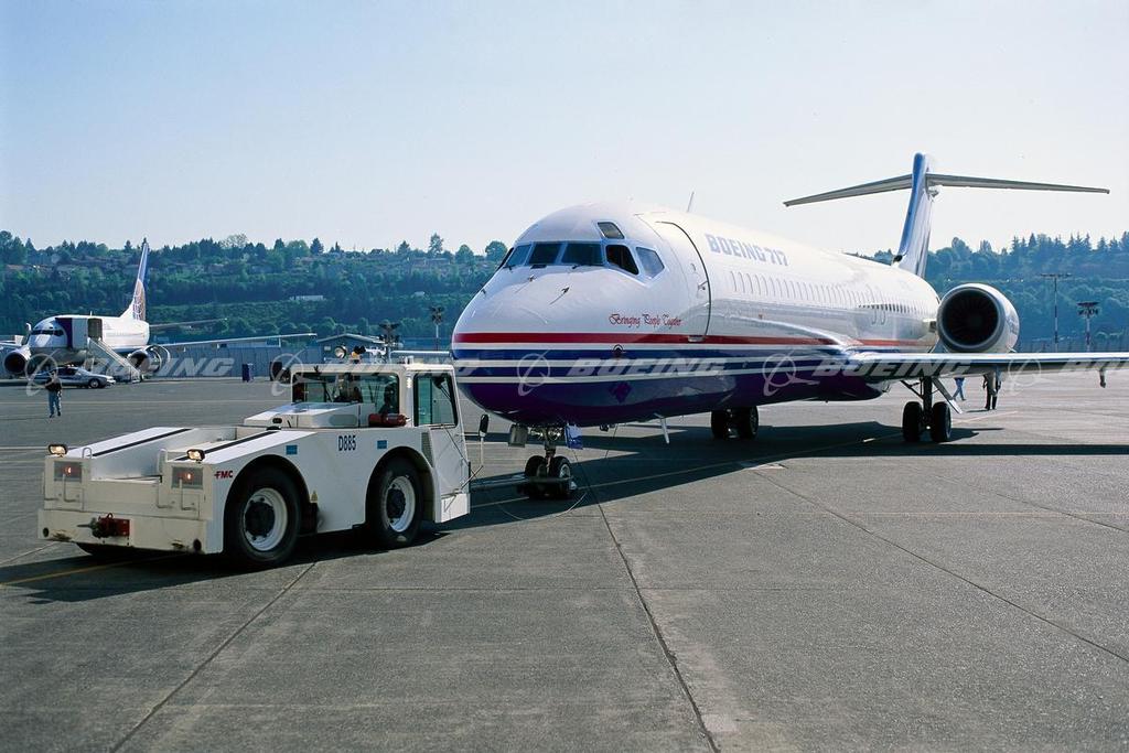 The 717 is a full-size twinjet designed specifically for the short-range, 100-seat regional airline market and is a very efficient and exceptionally quiet airplane. Its advanced technologies and rugged simplicity of design allow it quick turnaround time at a wide range of airports, so crew and passengers spend less time on the ground. It makes effective use of today's technology to lower operating costs, reduce noise and emissions, and provide big jet comfort. The airplane, formerly MD-95, was designated the Boeing 717 following the merger of McDonnell Douglas and The Boeing Company in 1997. In early 2005, after careful assessment of the challenging 100-seat market, Boeing announced that it will conclude 717 production in 2006 after delivering on current customer commitments.