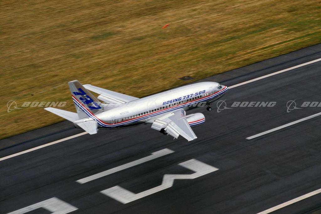 Although it has the largest model designator of its generation, the 737-500 is actually smaller than either the 737-300 or the 737-400. The 737-500 is 101 ft 9 in long and can seat up to 132 passengers in an all-economy configuration. It was built to replace the 737-200. About the same size as the 737-200, it is the smallest member of the 737 family, but uses all the advanced technologies of the larger 737-300 and 737-400 models. The 737 family of jets share the reliability, simplicity, family commonality, and low maintenance costs that have made the 737 the favorite of the world's airlines.