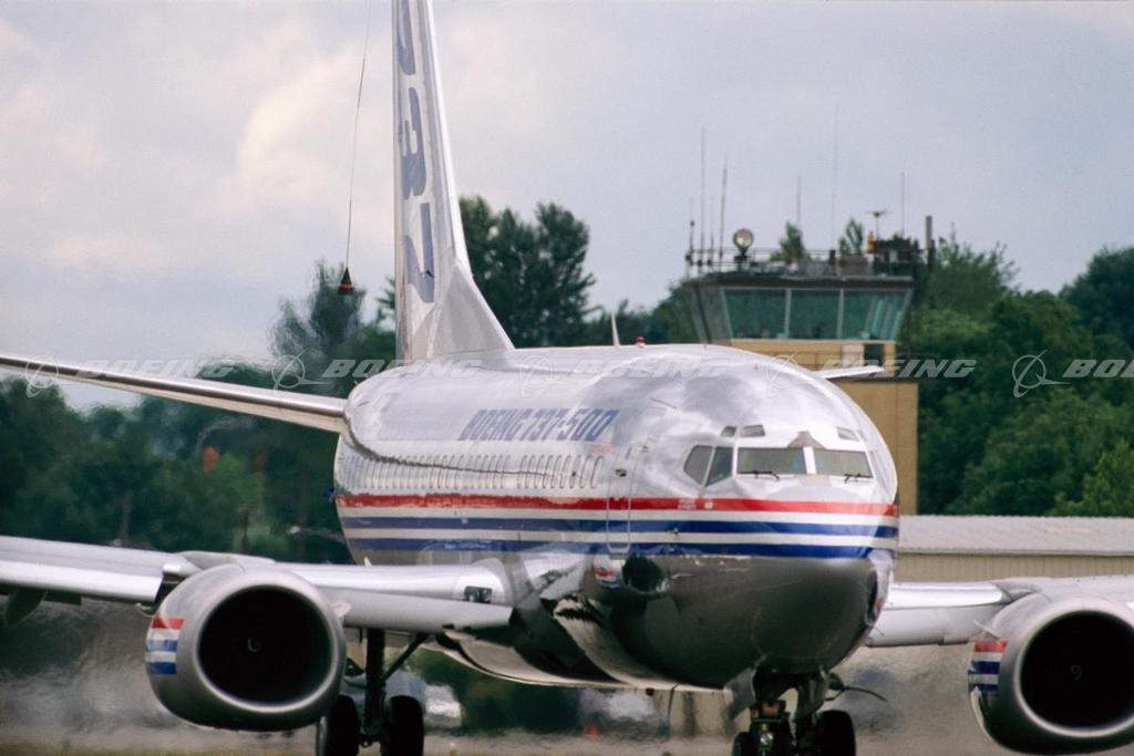 Although it has the largest model designator of its generation, the 737-500 is actually smaller than either the 737-300 or the 737-400. The 737-500 is 101 ft 9 in long and can seat up to 132 passengers in an all-economy configuration. It was built to replace the 737-200. About the same size as the 737-200, it is the smallest member of the 737 family, but uses all the advanced technologies of the larger 737-300 and 737-400 models. The 737 family of jets share the reliability, simplicity, family commonality, and low maintenance costs that have made the 737 the favorite of the world's airlines.