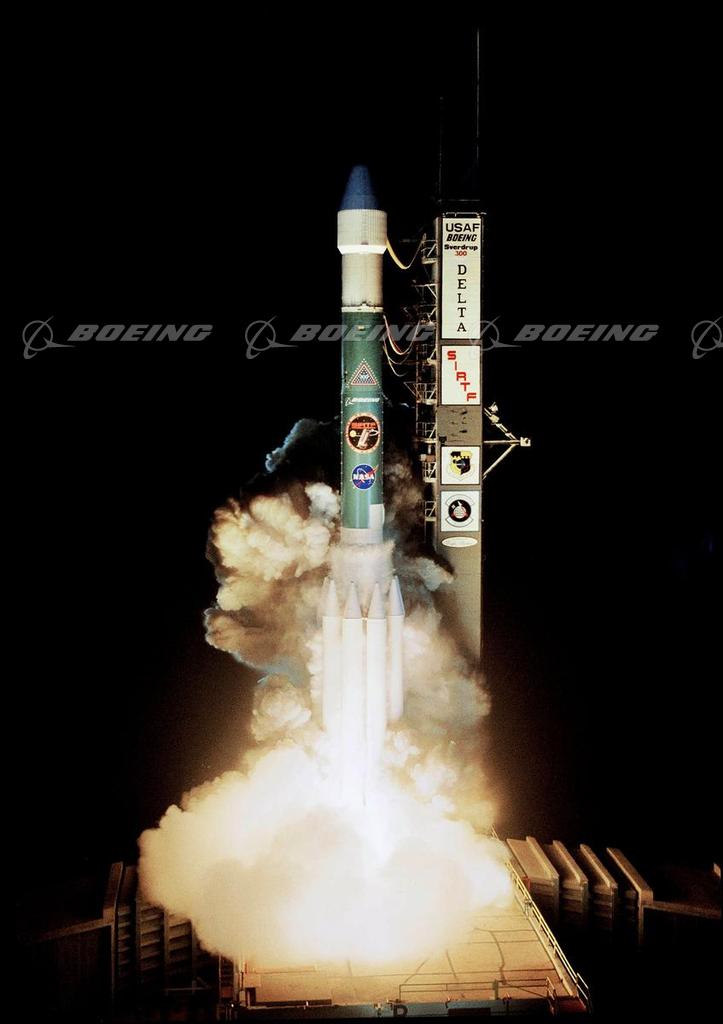 ST. LOUIS, Aug. 25, 2003 -- Boeing successfully launched NASA's Space Infrared Telescope Facility, or SIRTF, aboard a Delta II Heavy launch vehicle from Cape Canaveral Air Force Station, Fla. The launch for the Boeing Delta team commemorates 300 missions of a Delta rocket, spanning over four decades of launching spacecraft for government, commercial and civilian customers.