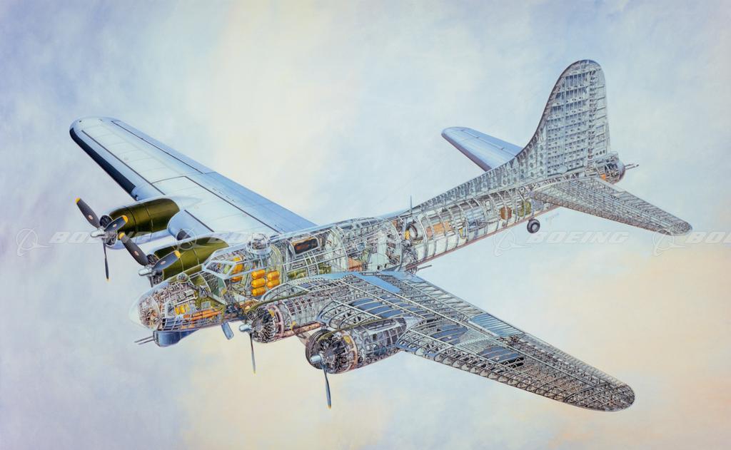 The last version of the Flying Fortress was the B-17G. Produced in the greatest quantity, it included a two-gun turret under the nose for defense against direct frontal attack. At an average cost of $238,329 per airplane, Boeing built 4, 035 B-17Gs; Douglas 2,395; and Lockheed (Vega), 2,250.