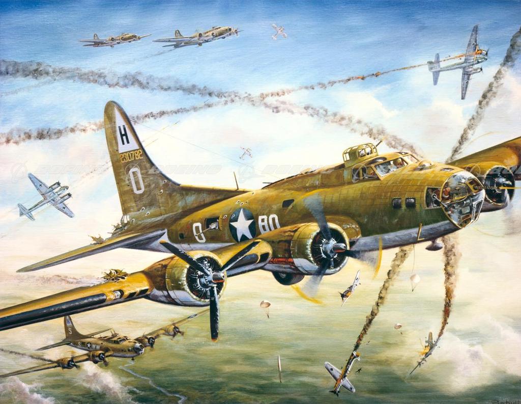On October 14, 1943, almost 300 B-17s made a second attempt to destroy the ball-bearing factories in Schweinfurt, Germany after a disasterous first attack on August 17. The B-17s were escorted by P-47 Thunderbolts up until the Thunderbolts reached the limit of their range and had to return home, leaving the fleet to continue unprotected for three hours until reaching their target. only 229 reached Schweinfurt, and on the return, the German fighters had landed, refueled and rearmed and attacked the retreating fleet again. The battle demonstrated to the allies the importance of fighter escorts with sufficient range and the vulnerability of heavy bombers against interceptors.
