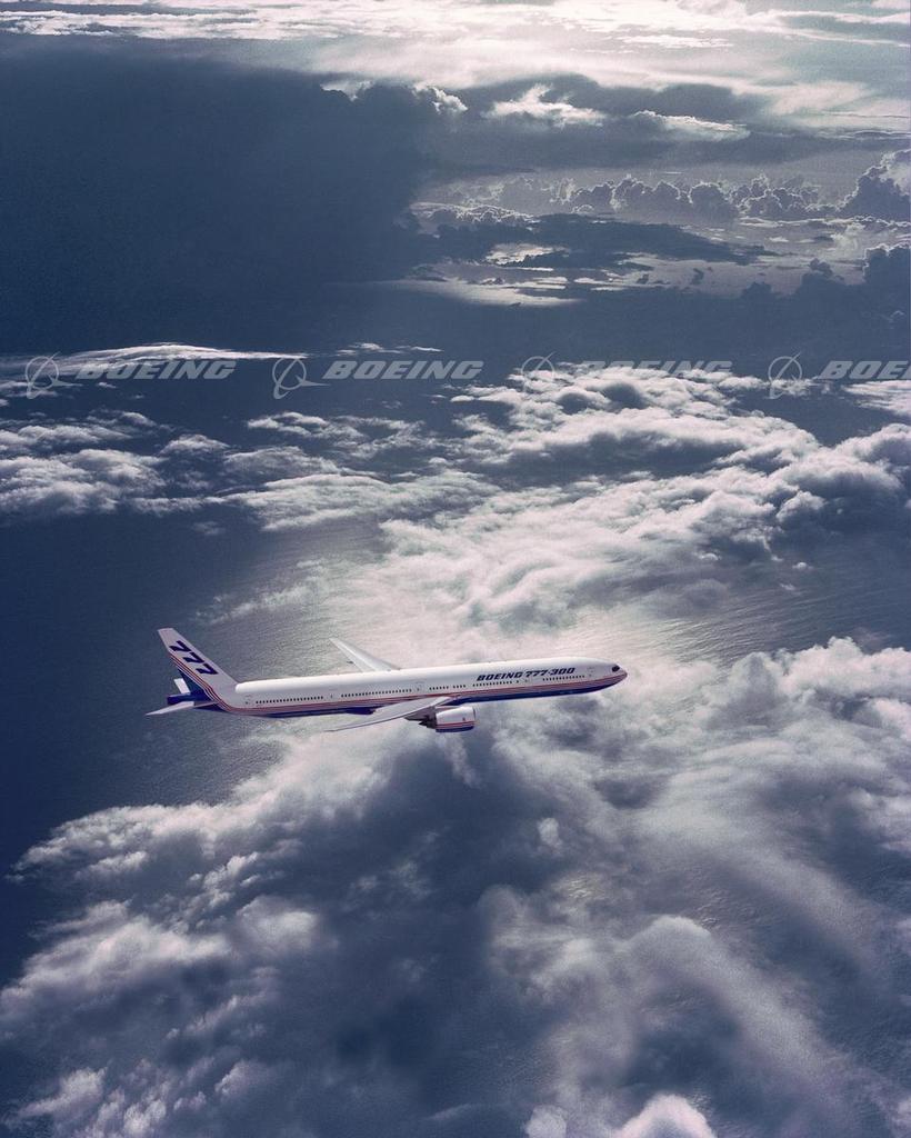 The 777-300 is a widebody, medium-to-long-range twinjet, capable of carrying between 328 and 550 passengers and flying 6,450 statute miles (10,370 kilometers).