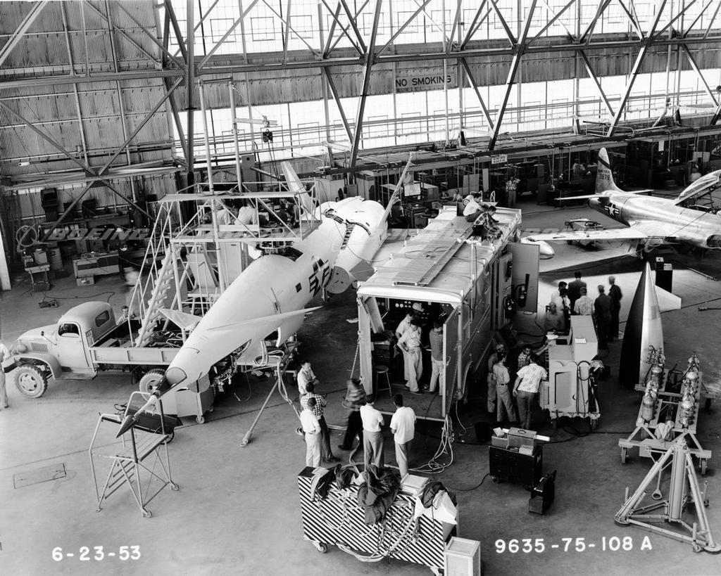 Moving X-10 Navaho Rocket Plane Out of Hangar