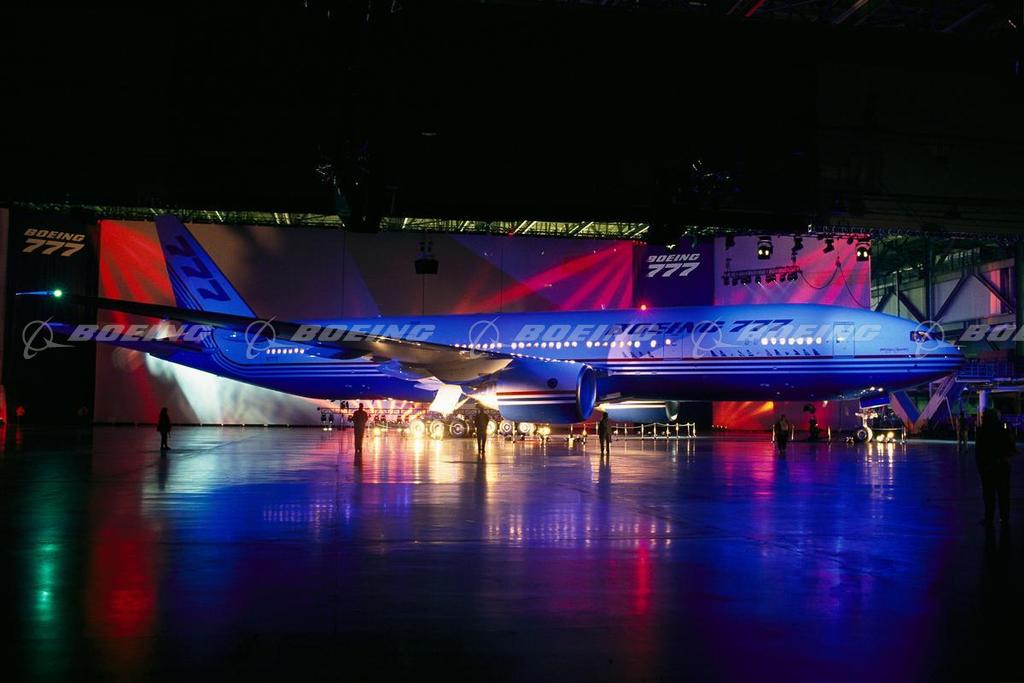 Ceremonial rollout of the first 777. Boeing unveiled the first 777 to approximately 100,000 employees and their guests, customers and suppliers.