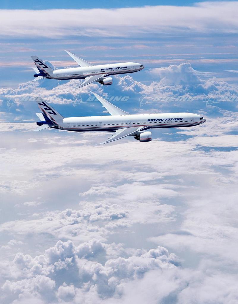 The Boeing 777 family is the most technologically advanced family of airplanes in the world. The 777 seats from 301 up to 368 passengers in a three-class configuration with a range of 5,210 nautical miles (9,649 km) for the 777-200 to 9,420 nautical miles (17,446 km) for the 777-200LR Worldliner (Longer Range). The 777 – the world’s largest twinjet – is available in six models: the 777-200; 777-200ER (Extended Range); a larger 777-300; two new longer-range models, the 777-300ER and 777-200LR (the world’s longest range commercial airplane); and the Boeing 777 Freighter.