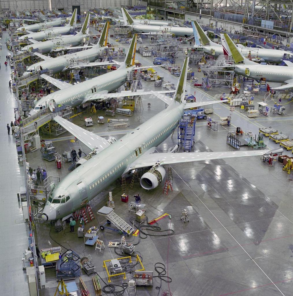 The Boeing Business Jet is built on the 737 platform. The fuselages are assembled in Wichita and transported via rail to Boeing manufacturing facility in Renton, WA. for final assembly. Customers can custom-fit the interiors to accomodate their needs and preferences. In 2002 the 737 manufacturing process converted to a moving line system, replacing the station to station method of assembly pictured here.