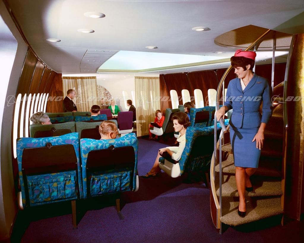747-100 Upper Deck Passenger Cabin Mock-Up, circa 1968
