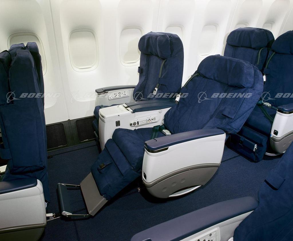 The 777 was designed especially for comfort on longer flights. The 777 is 30.9 inches (78.4 centimers) wider than its Airbus counterpart, the A330/340. This extra elbowroom makes the 777 the widest airplane in its class, allowing for roomier aisles and seats. Although individual airline customers choose seating configurations, once an interior is configured, the extra width makes a difference in coach, business, and economy classes. When airlines opt to seat nine abreast in economy class, for example, the seats can be 18 1/2 inches (46.99 centimeters) wide - the widest in the industry. In business class, seating can accommodate 20-inch (50.8 centimeter) wide seats, the same size as first-class seats on many competing airplanes.