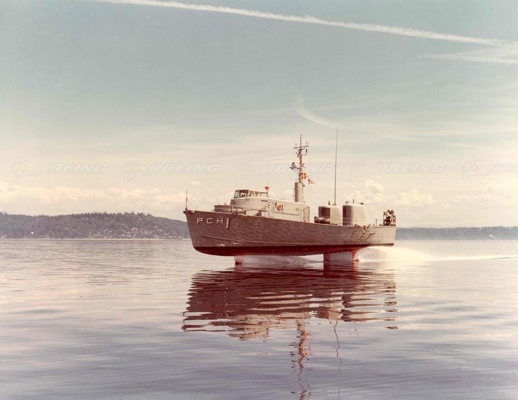 The Highpoint was a 110 foot submarine chaser that used propellers. It was a fast, highly maneuverable, all-weather testbed that Boeing developed and launched on August 7, 1962 to utilize jet airplane systems in a marine environment.