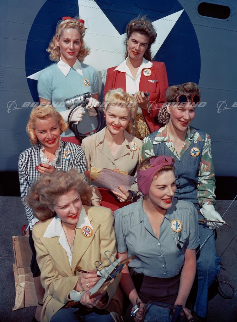 Douglas "Rosies" in California Enjoy a Lunch Break on the Boeing B-17 Line