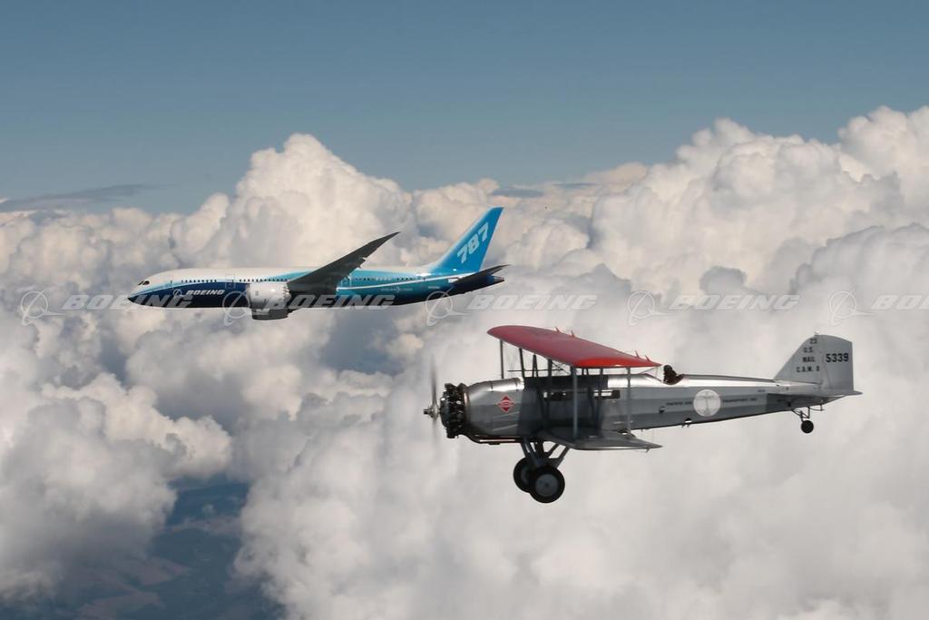 The Model 40A was the first Boeing airplane to carry passengers, with room for two people in a tiny cabin, as well as cargo space for mail. The 787 Dreamliner is the latest addition to the Boeing commercial line. The 787-8 Dreamliner will carry 210 - 250 passengers.
