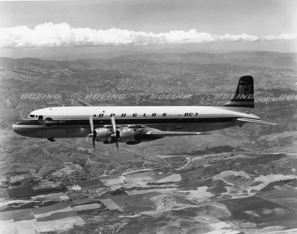 The DC-7 was the first commercial transport able to fly nonstop westbound across the United States against the prevailing winds.